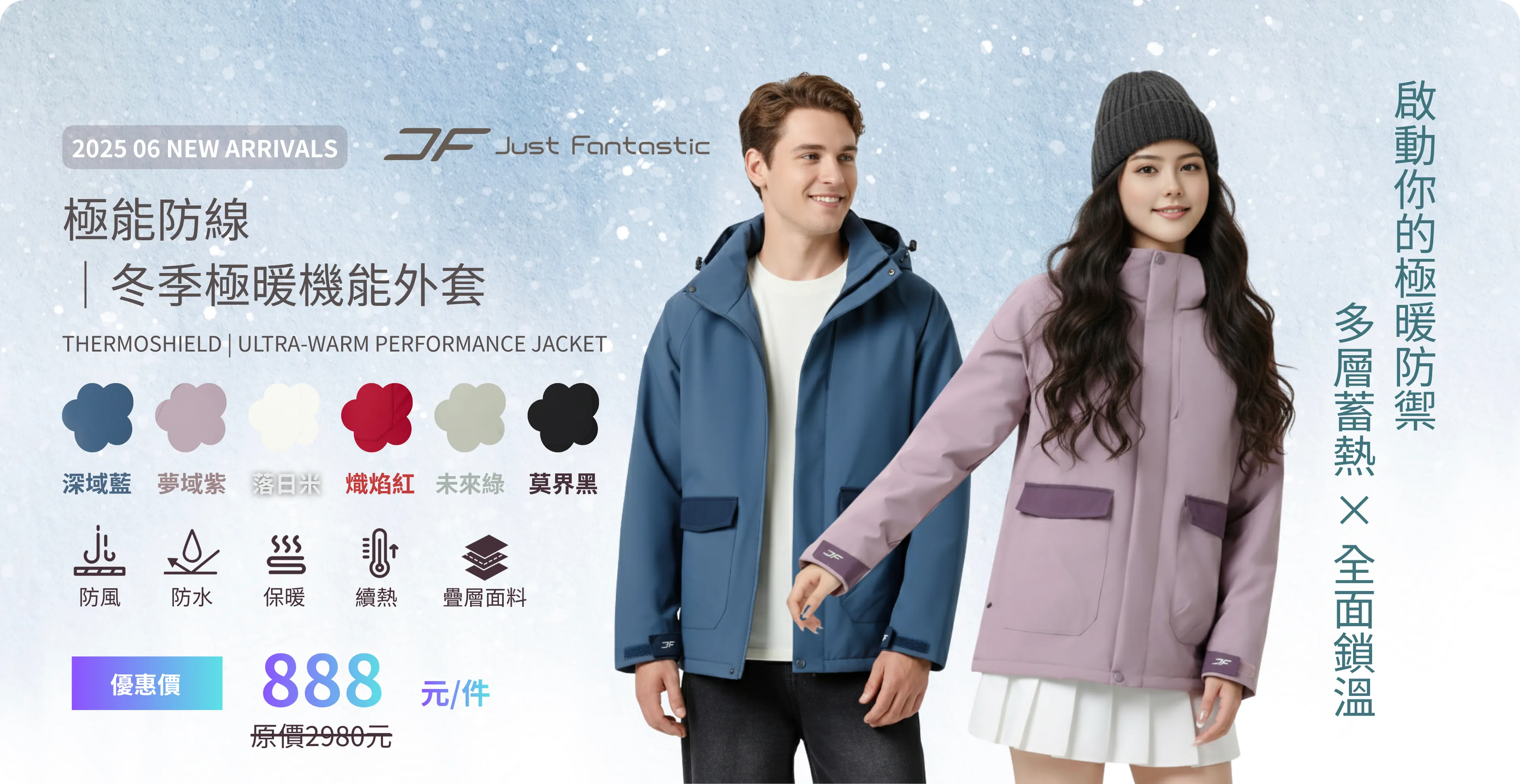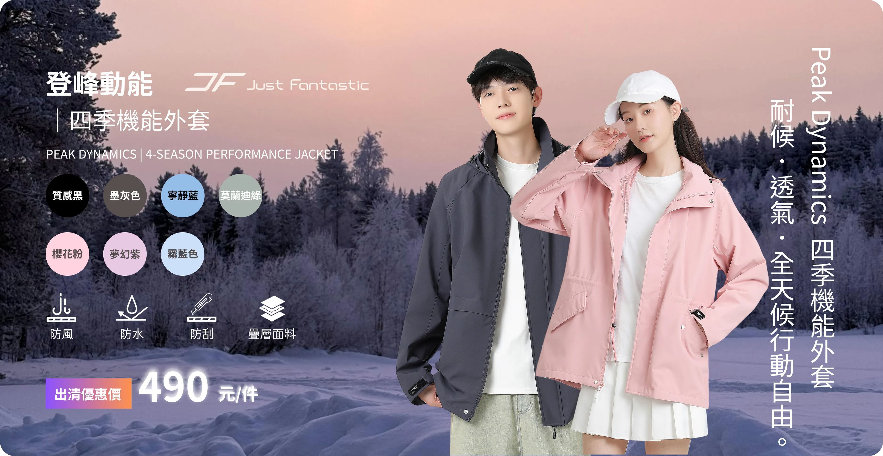 JF 起家於機能服飾代工,擁有自有工廠與設計打版團隊,並累積多年外銷經驗。為打造真正適合台灣人的機能服,我們深入市場、貼近需求,正式創立自有品牌 JF。